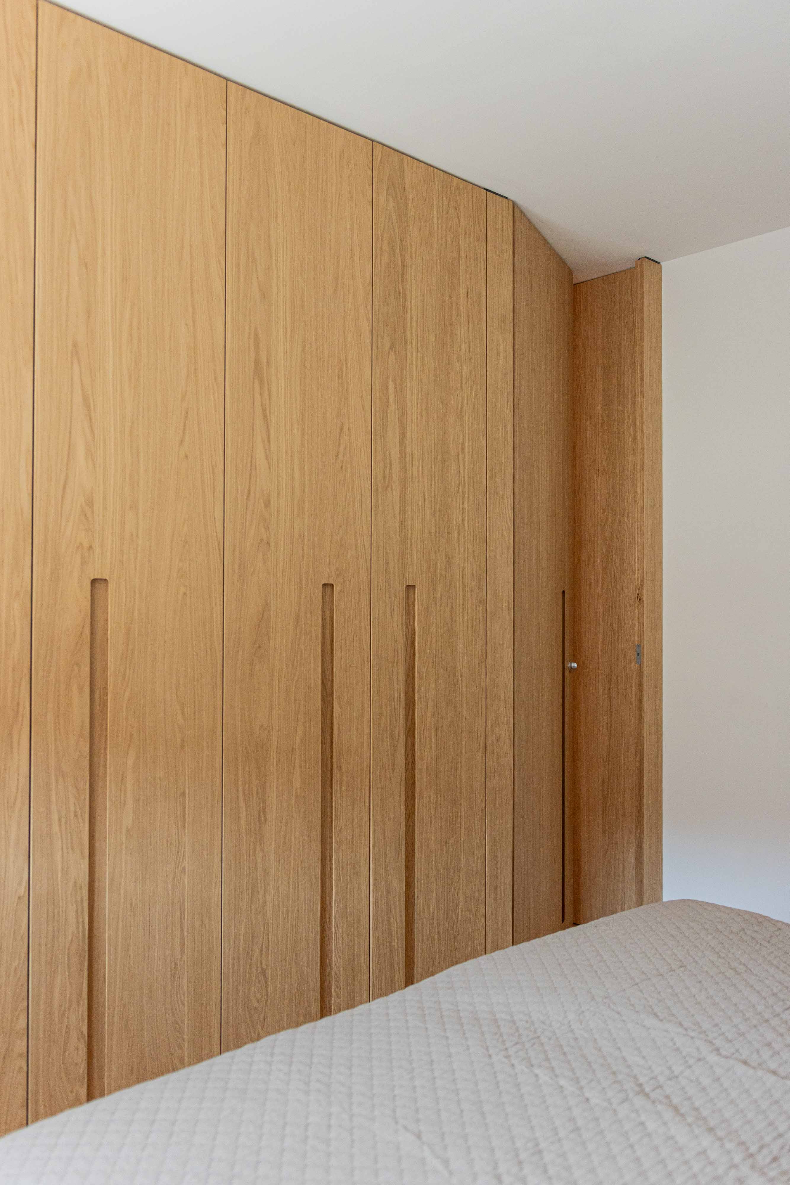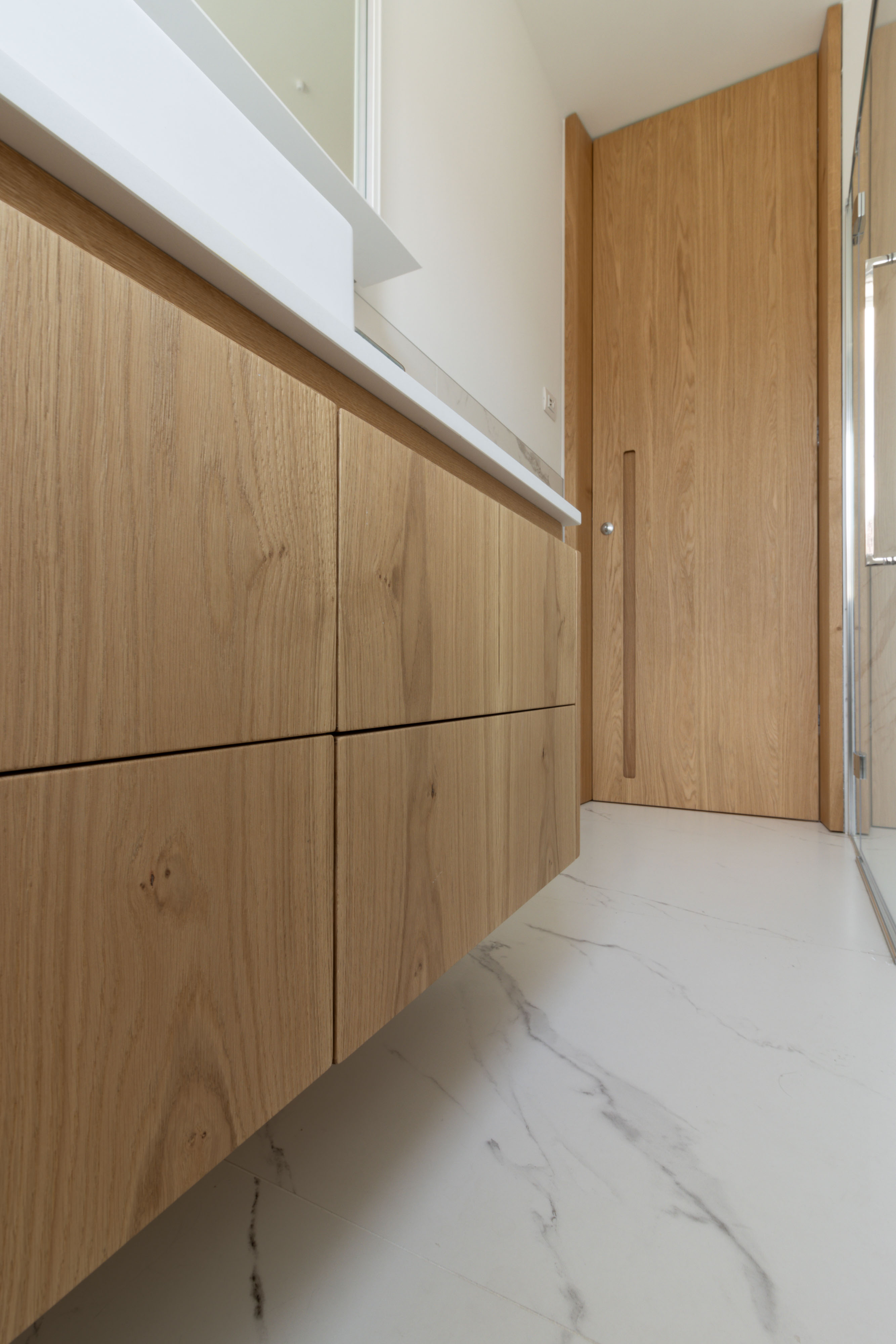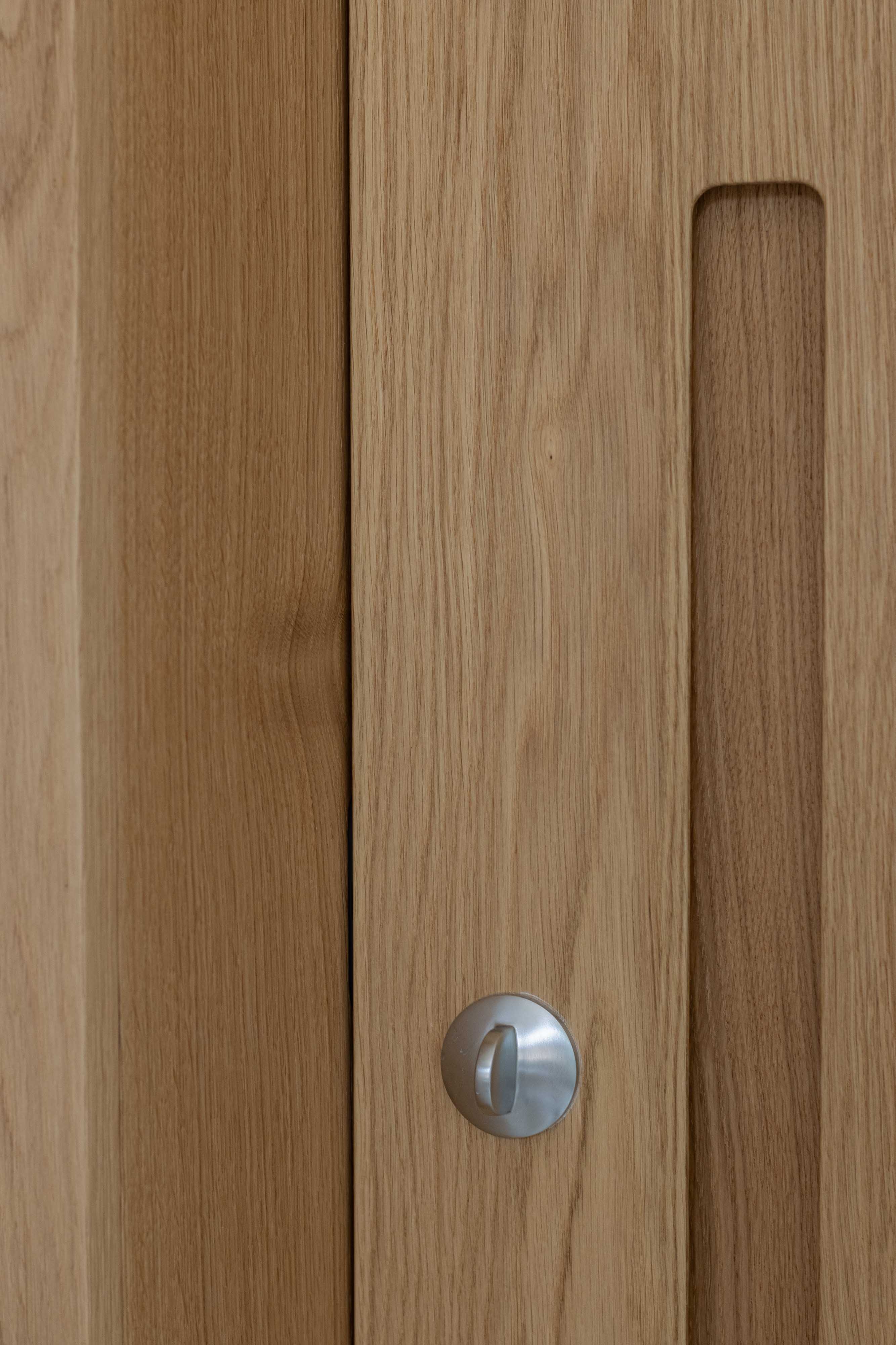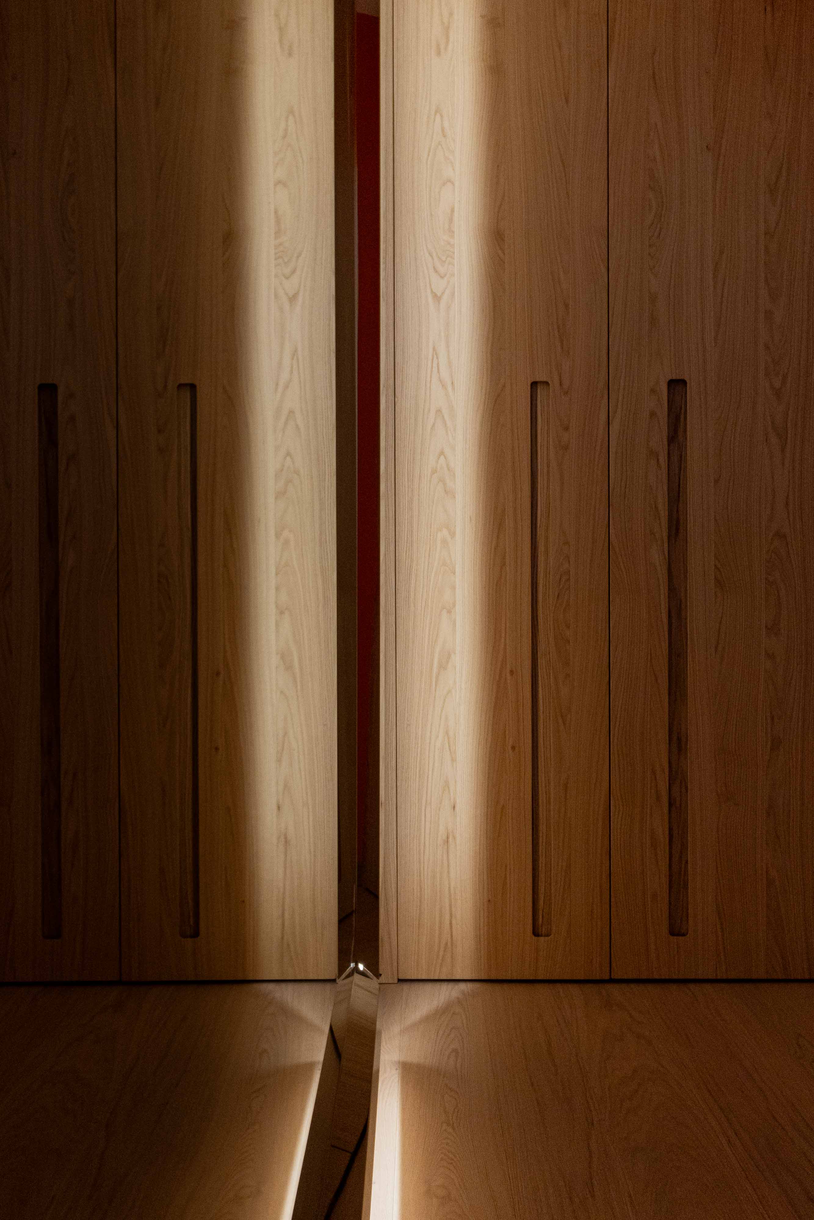 disegnato dall’ architetto Piervittorio Prevedello e realizzato interamente nel nostro laboratorio, le porte interne sono fissate con cerniere a scomparsa a dei montanti inseriti nella boiserie, senza nessun traverso superiore chiudono a filo in modo da creare una visione continua. I maniglioni incassati aiutano l’apertura del battente che è tenuto chiuso con una serratura magnetica, le pareti, cabine armadio e porte sono completamente fissati con un ancoraggio nascosto che mantengono l’ arredamento intatto.